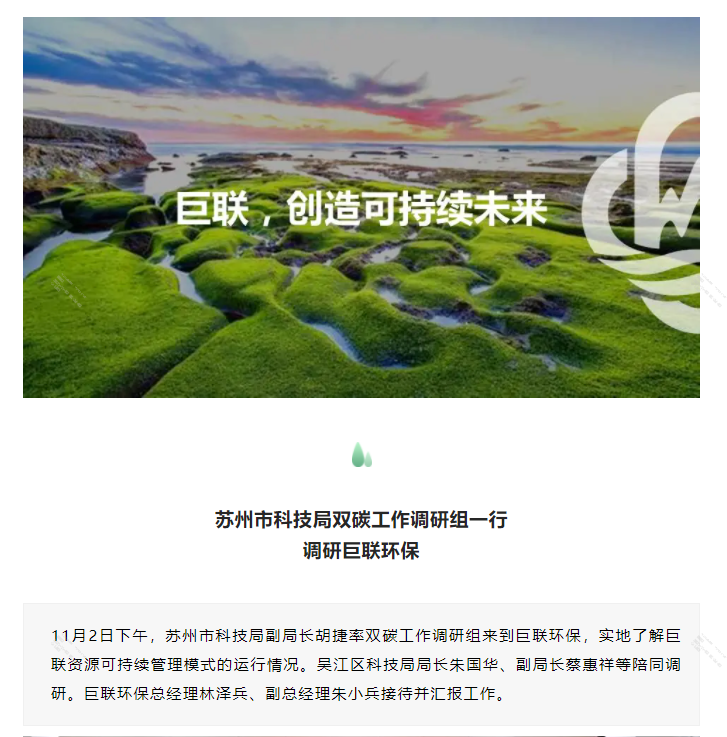 苏州市科技局双碳工作调研组一行调研巨联环保