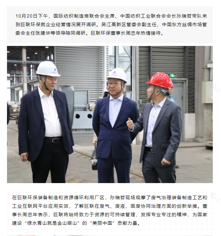 中国纺织工业联合会会长孙瑞哲调研巨联环保