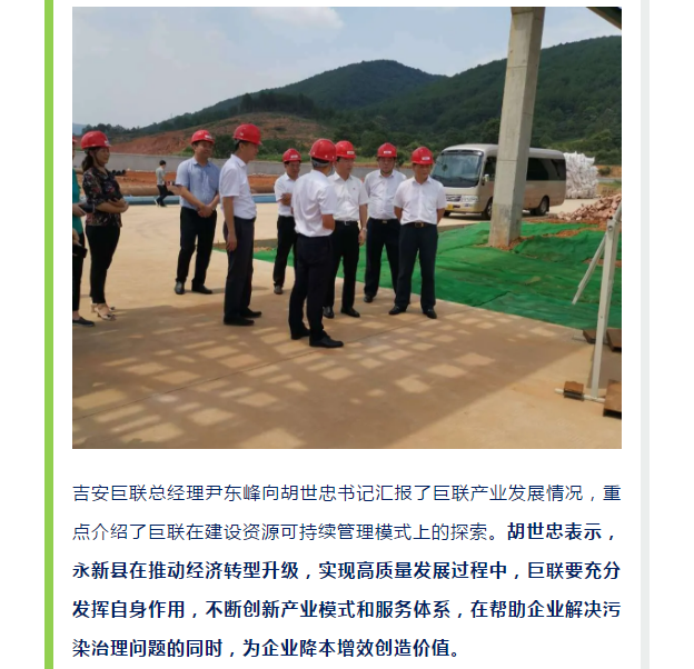 江西省人大副主任、吉安市委书记胡世忠调研吉安巨联