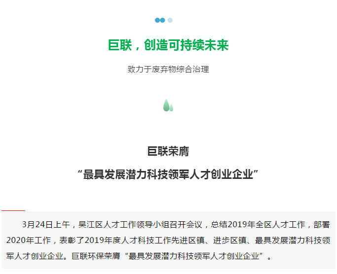 巨联荣膺“最具发展潜力科技领军人才创业企业”