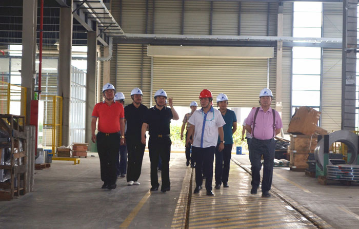 商会成员首先参观了巨联三期生产基地,了解企业生产经营状况。参观过程中,周忠年介绍了三期基地的整体规划及涂层机项目的进展情况。巨联致力于生产世界领先的涂层生产设备及配套废气治理设备。公司从产品设计、原料采购、生产组装到售后服务,均严把“质量关”,采用一流工艺,采购一流设备,生产一流产品,做到“高效、节能、安全”的统一平衡。