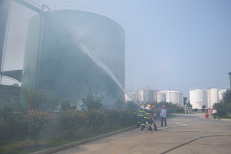 为检验公司发生安全事故时,厂区紧急应变小组成员的快速反应和高效实施应急救援的能力,最大限度控制事故的危害,8月22日下午,模拟废水罐区因甲苯泄漏引发火灾的应急消防演练在树脂厂区举行。