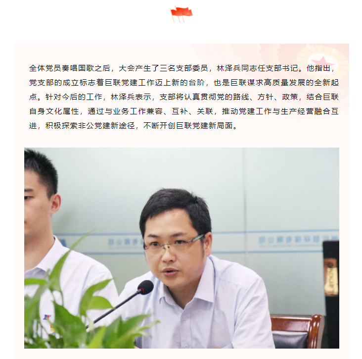 巨联心向党|党支部成立大会顺利召开